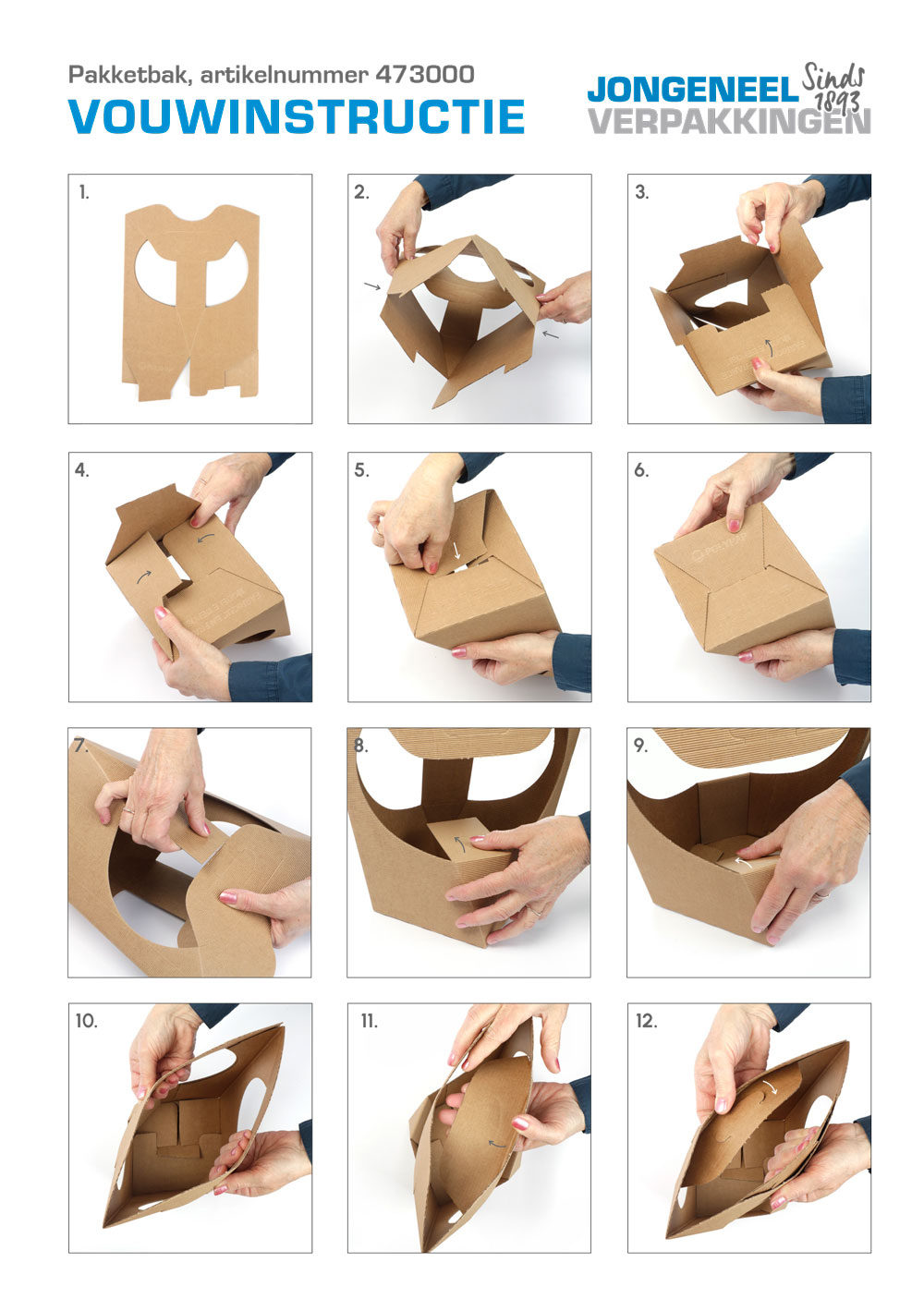 Deze pakketbak met greep heeft wel een hele bijzondere vorm. De bak is geheel van karton en in 2 kleuren beschikbaar, kraft en zwart.